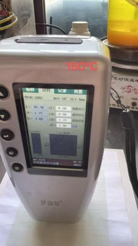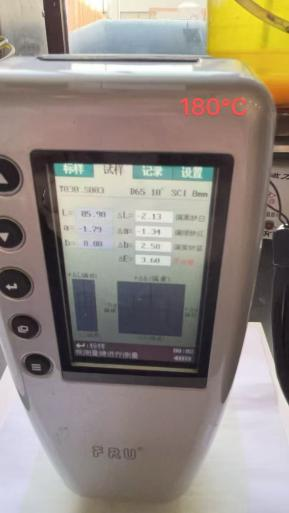 2、但在180度,3分鐘焙烘情況下,色差值ΔE=3.68,顯示不合格,產生了色差。