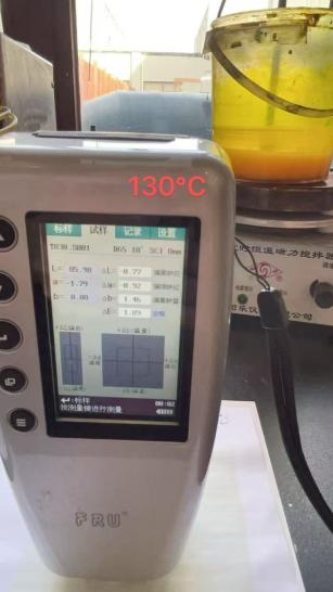 1、A113妃紅,A204金黃在130度,150度焙烘3分鐘的情況下,色差值ΔE=1.00,說明在此溫度情況下,耐熱性能優異。